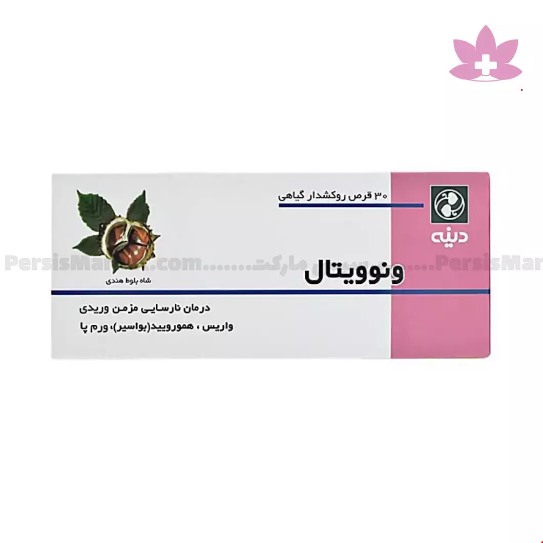 قرص ونوویتال دینه فرآورده ای طبیعی است که حاوی عصـاره دانـه شـاه بلـوط هنـدی می باشد. قرص ونوویتال دینه جهت بهبود نارسایی مزمن شبکه سیاهرگی و رفع عـوارض ناشی از آن همچون اِدم، خارش، درد و احساس سنگینی در پاها، گرفتگی عضله ساق پا بسیار موثر بوده و به پیشگیری و بهبود علائم بیماری های واریس و هموروئید کمک بسزایی می نماید.