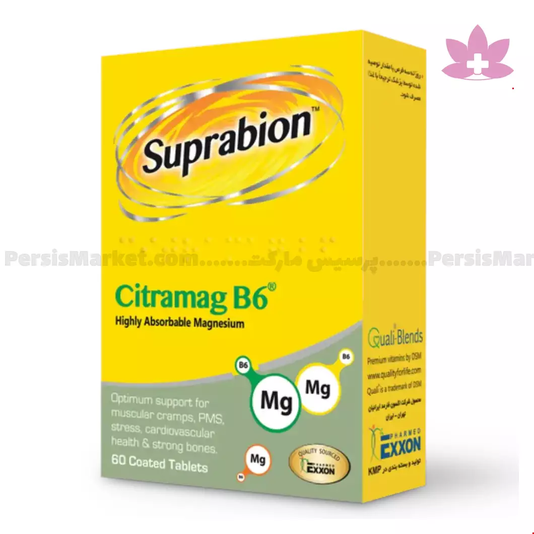 قرص سیترامگ ب6 سوپرابیون حاوی 2 ترکیب اساسی منیزیم و ب6 جهت حفظ سلامت استخوان و دندان ها و همچنین بهبود عملکرد سیستم عصبی – عضلانی می باشد.