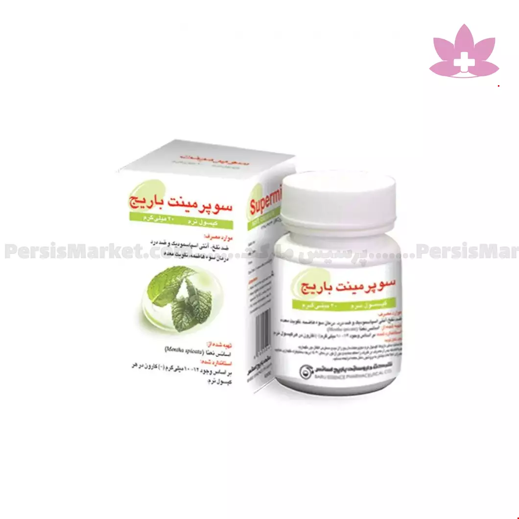 کسپول سوپرمینت باریج حاوی اسانس نعنا بوده و جهت رفع مشکلات گوارشی از جمله نفخ ، سوءهاضمه و زخم معده و همچنین جهت تقویت معده فرموله شده است.