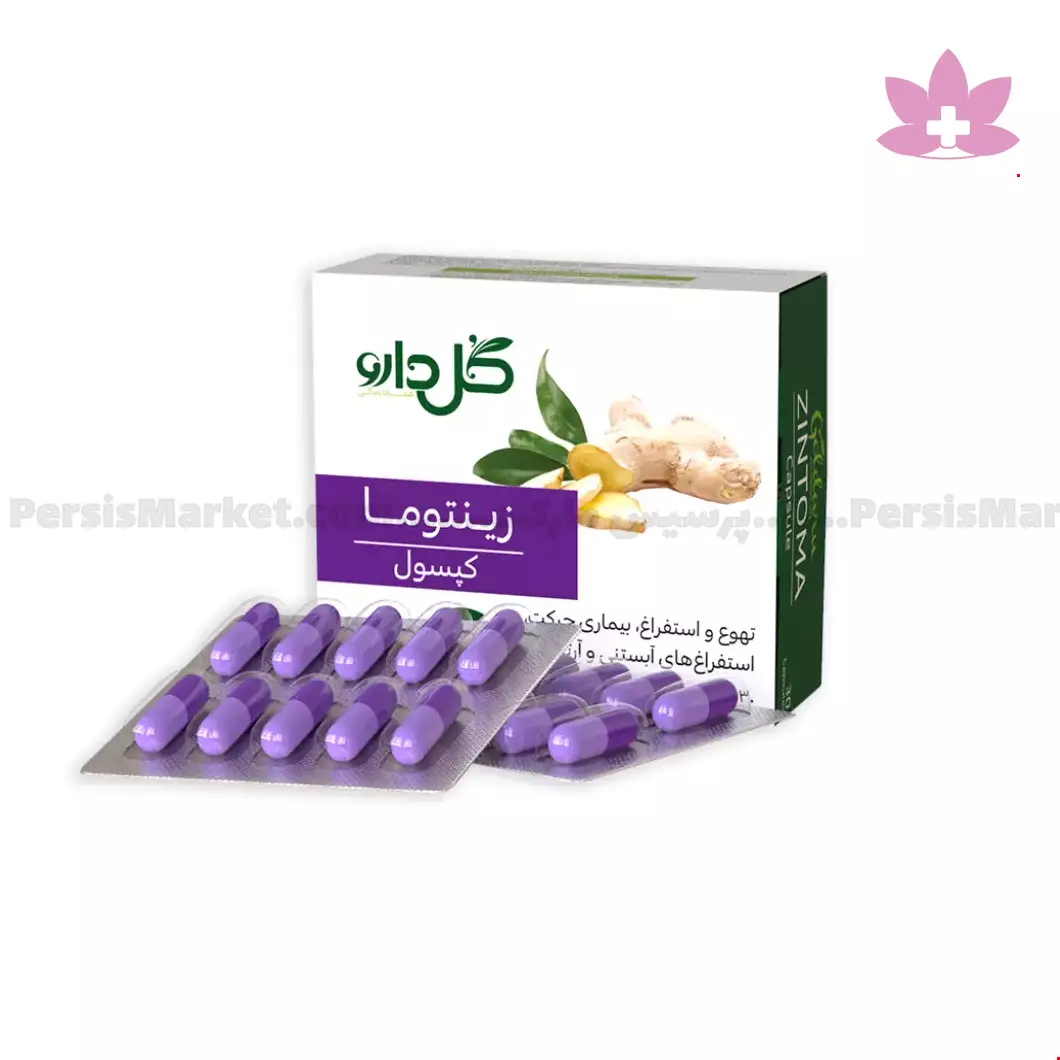 کپسول زینتوما گل دارو حاوی پودر زنجبیل بوده و جهت بهبود تهوع و استفراغ ، حالت تهوع دوران بارداری و همچنین رفع التهاب مفاصل در بیماری هایی همچون آرتریت روماتوئید مورد توصیه متخصص می باشد