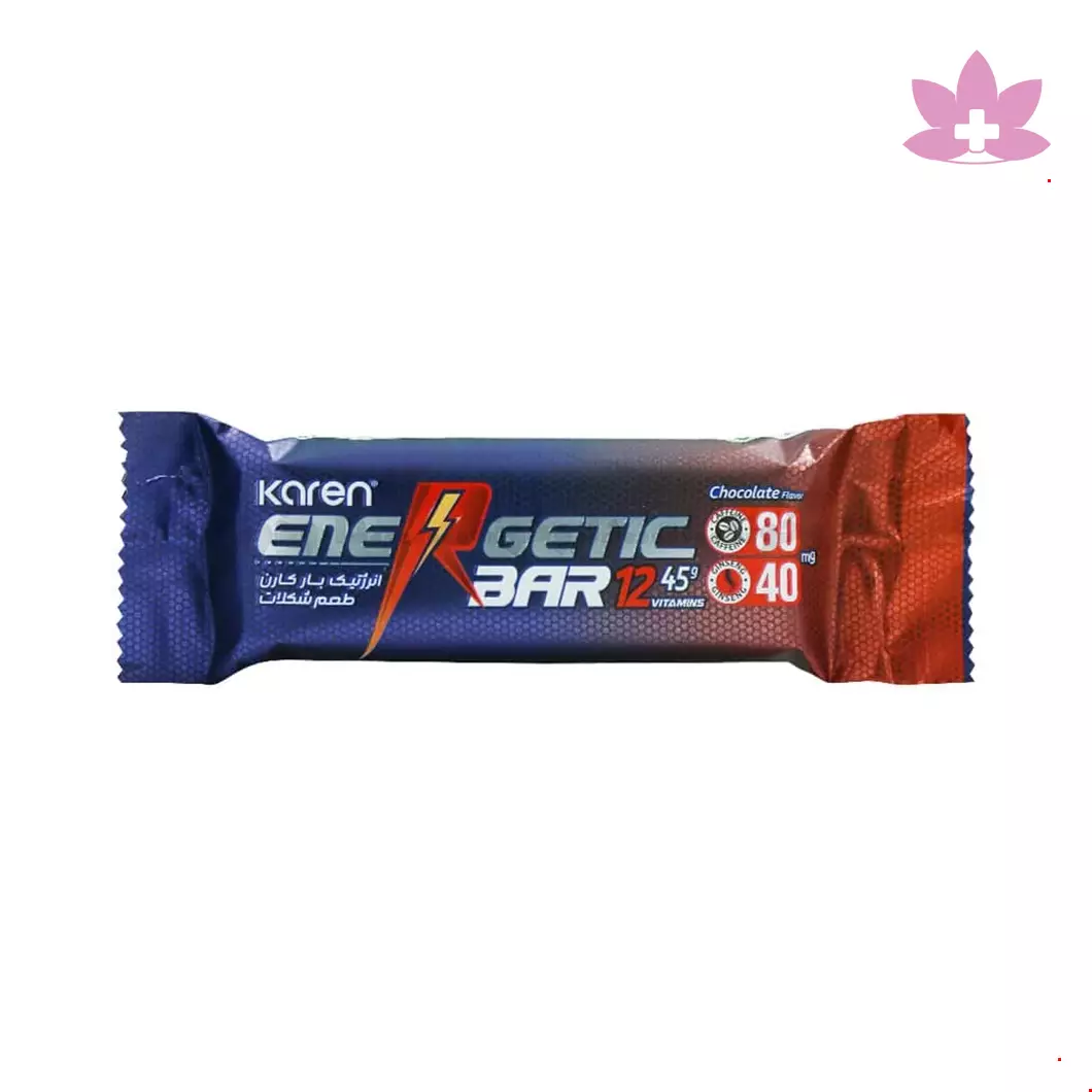 شکلات انرژی بار کارن به سبب وجود پودر خرما ، پروتئین ، جینسینگ ، کافئین و ال آرژنین موجب افزایش سطح انرژی و هوشیاری و تاخیر در بروز خستگی می شود