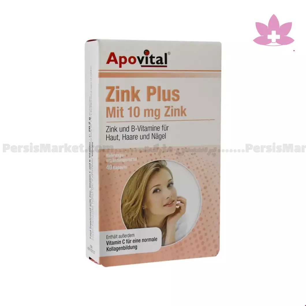 کپسول زینک پلاس آپوویتال حاوی 10 میلی گرم زینک به همراه ویتامین های گروه ب و ویتامین ث می باشد، کپسول زینک پلاس آپوویتال ترکیبی عالی جهت تقویت سیستم ایمنی، درمان ریزش مو و حفظ سلامت پوست، مو و ناخن و بهبود اشتها و رشد قدی کودکان در سنین رشد می باشد.