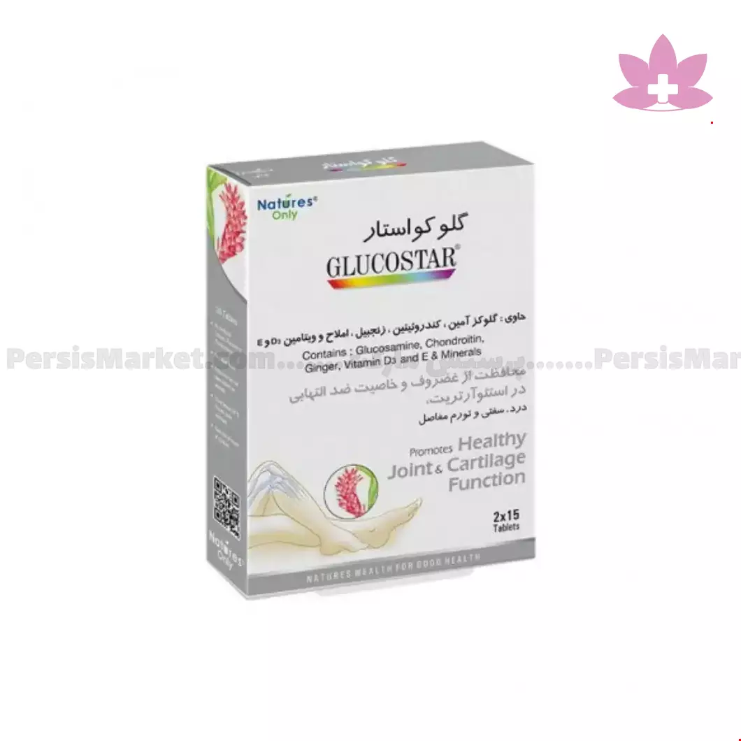 قرص گلوکو استار نیچرز اونلی حاوی عناصر طبیعی و گیاهی، مولتی ویتامین و مینرال و آنتی اکسیدان می‌باشد. قرص گلوکو استار نیچرز اونلی موجب حفاظت از ساختار غضروف و مفاصل، تقویت سیستم ایمنی و کاهس حساسیت مفاصل نسبت به سرما می‌شود.